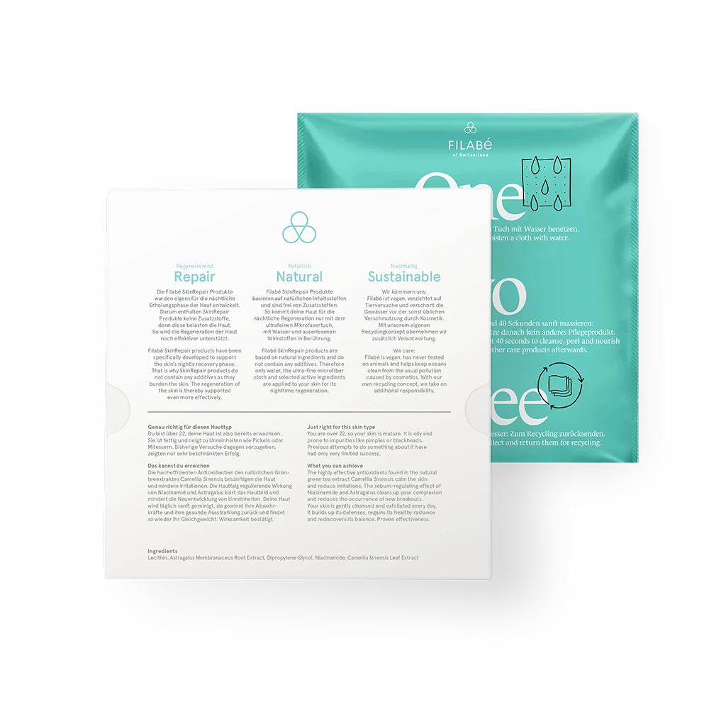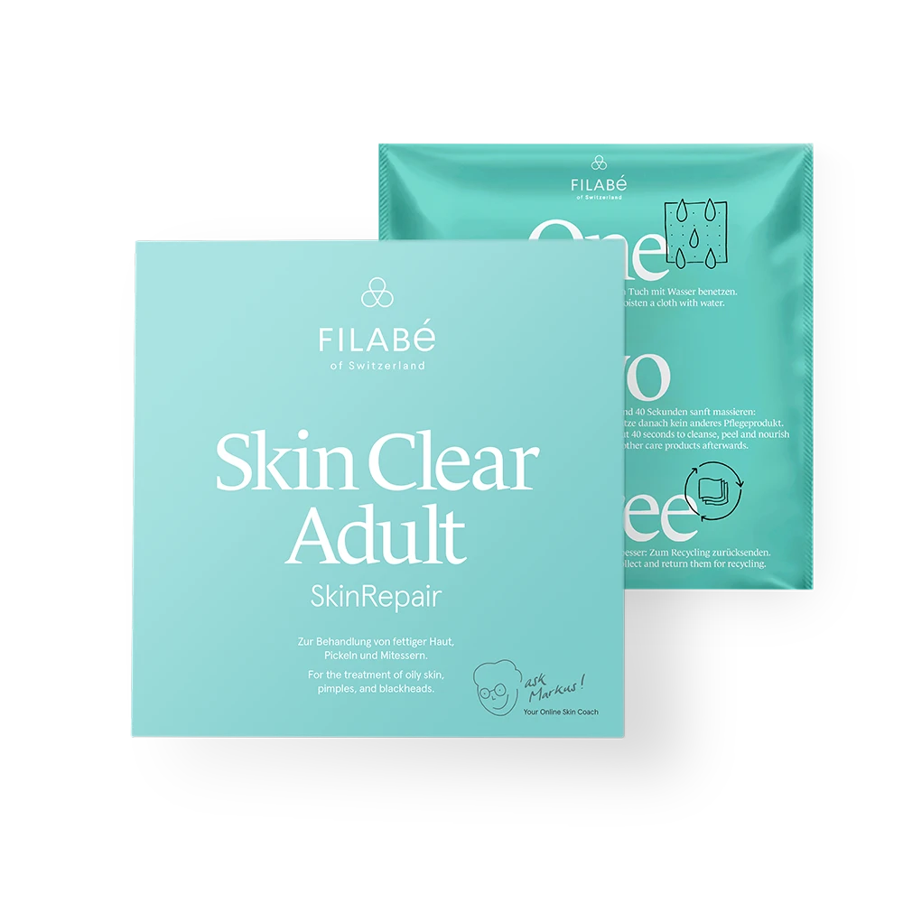 Skin Clear Adult contains selected active ingredients that are tailored to the needs of your skin. During usage, they are activated with water. Free from additives. All Filabé products in the SkinRepair range contain soy-based lecithin — it's not only nourishing but also enhances the absorption of active ingredients by the skin.
